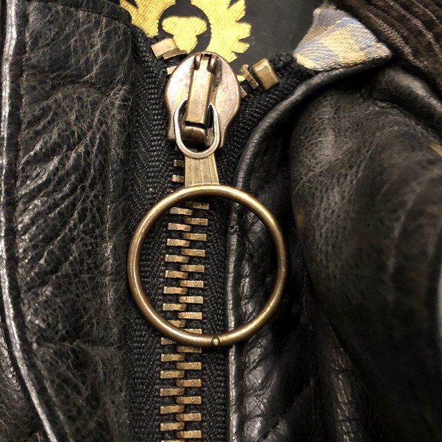 コンディションとしては、レザー特有のシワやアタリは見られるものの、これこそがこのジャケットの魅力でもあり、着用に支障のあるダメージは見受けられません。むしろここからさらに育てていける、非常に良い状態と言えるでしょう。