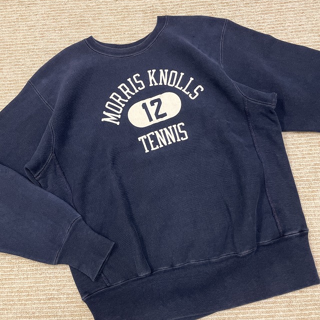 「単色タグ、MORRIS KNOLLS TENNIS、3段プリント、ネイビー×ホワイト」