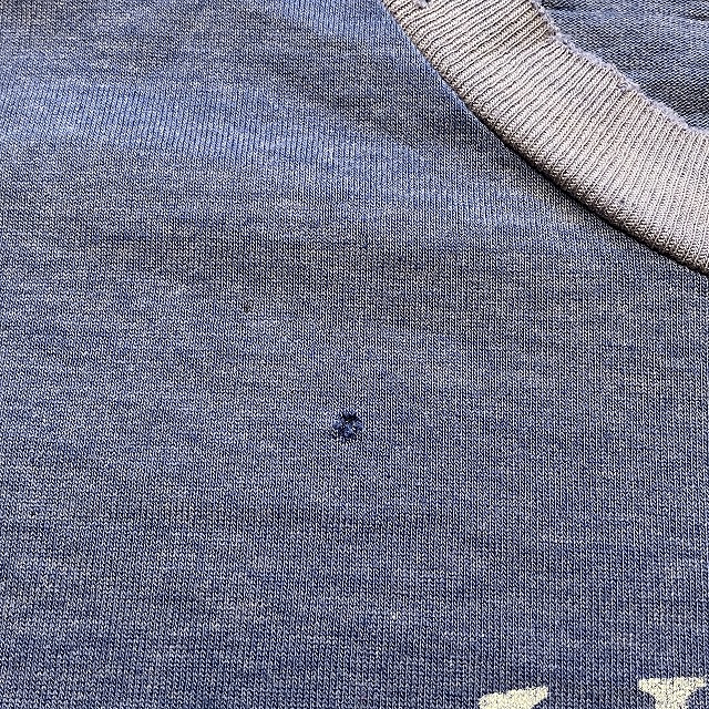 - 襟にダメージ、所々に小穴や、薄汚れがみられます。また、ボディ左袖付近にリペアがみられます。その他、スレ、アタリ等の年代相応の着用感がみられ、ユーズド慣れされた方や雰囲気重視の方におすすめの商品です。
