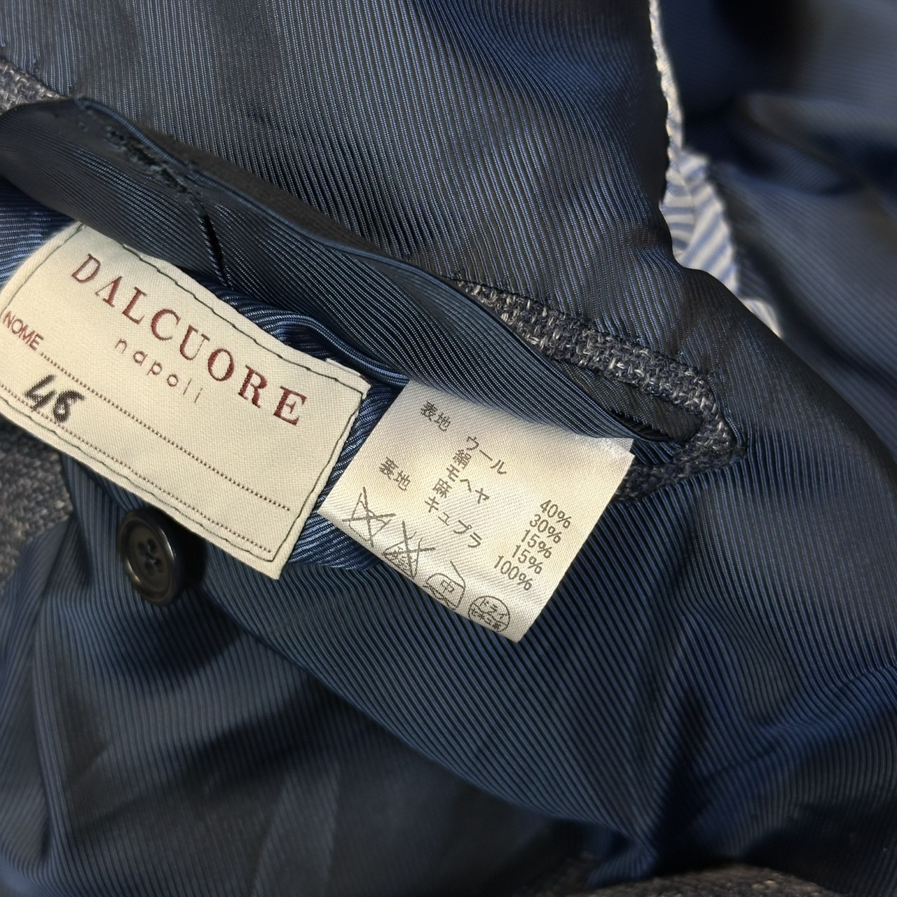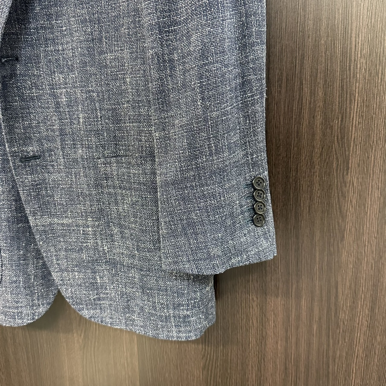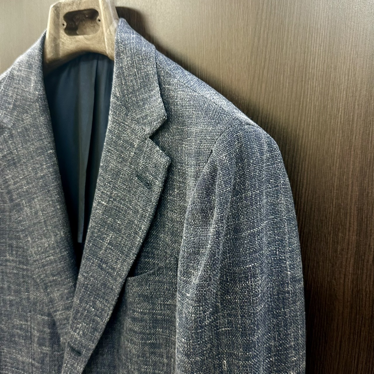 ウール、シルク、モヘア、リネンの4者混生地、春夏秋に適した素材となります。