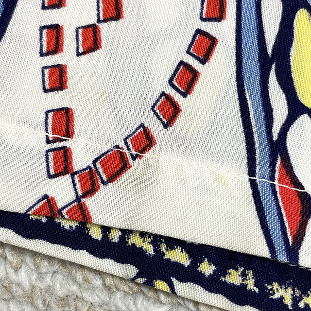 - 画像のように、薄汚れやわずかな汚れ、糸ツレがあり、前左裾上付近に数か所リペアがございます。