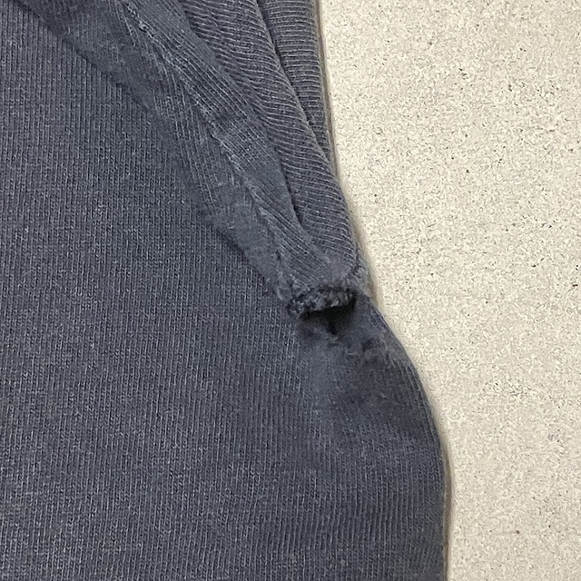 - 両脇下にダメージや破れ、裾ステッチの抜けがみられます。