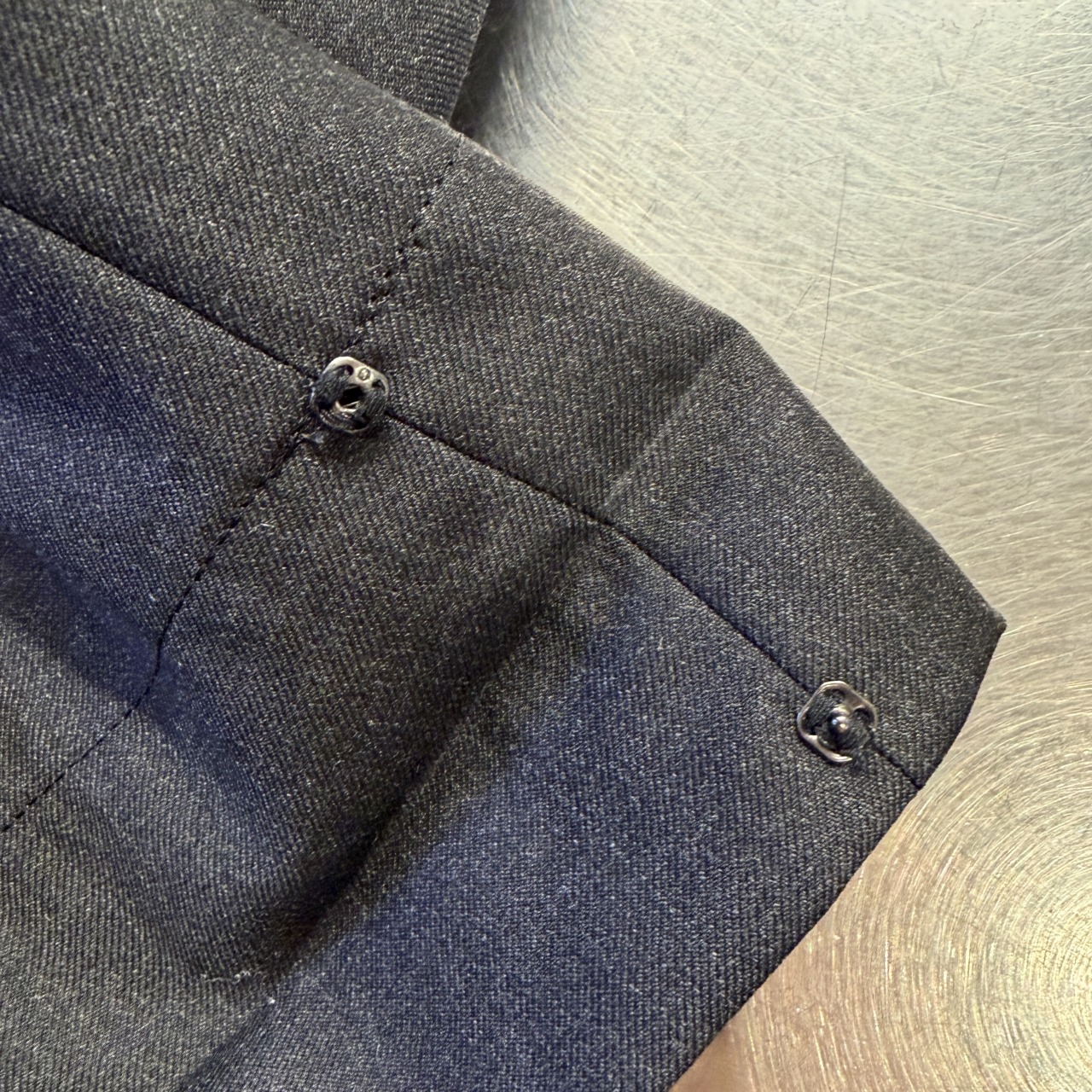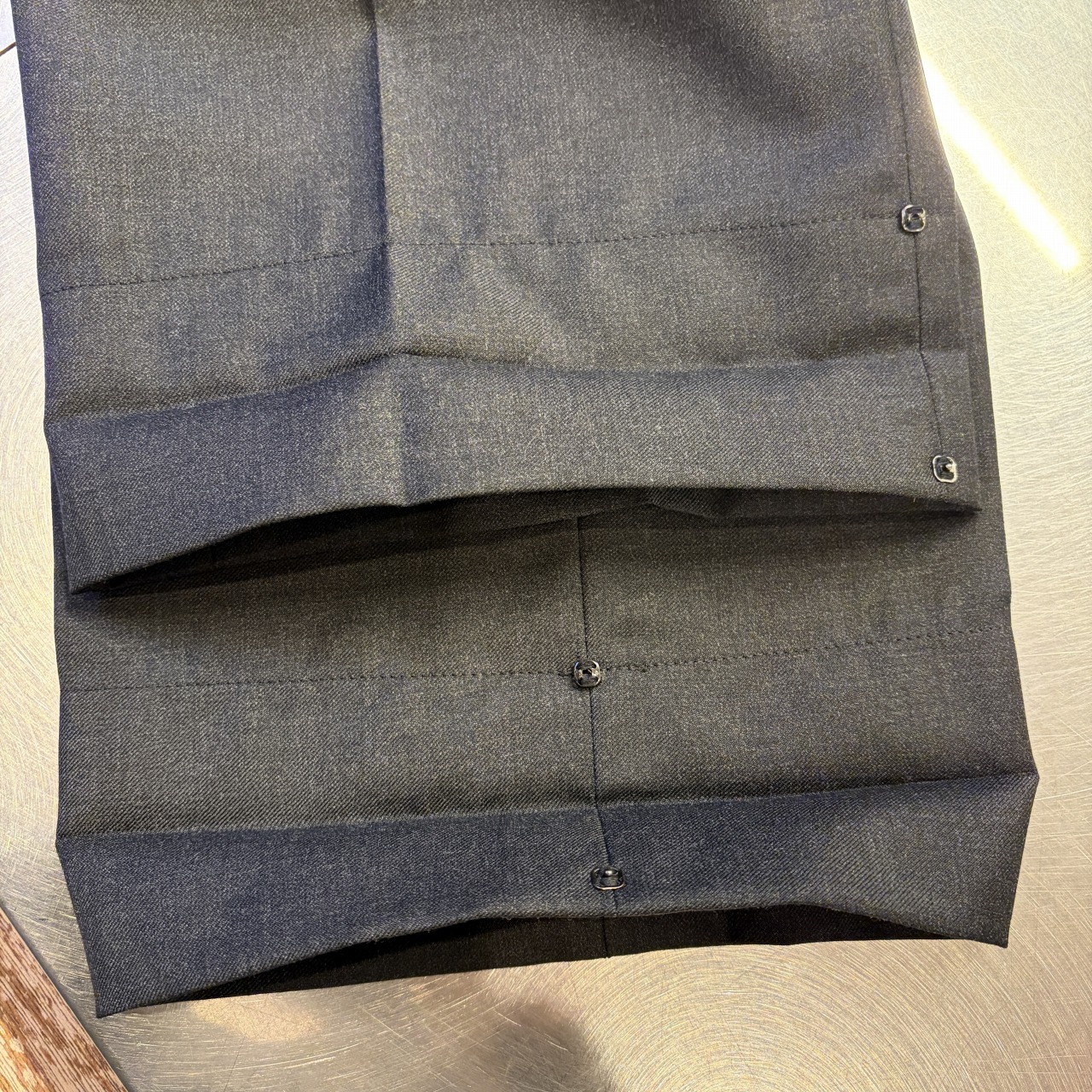 裾はボタンでダブルになっております。