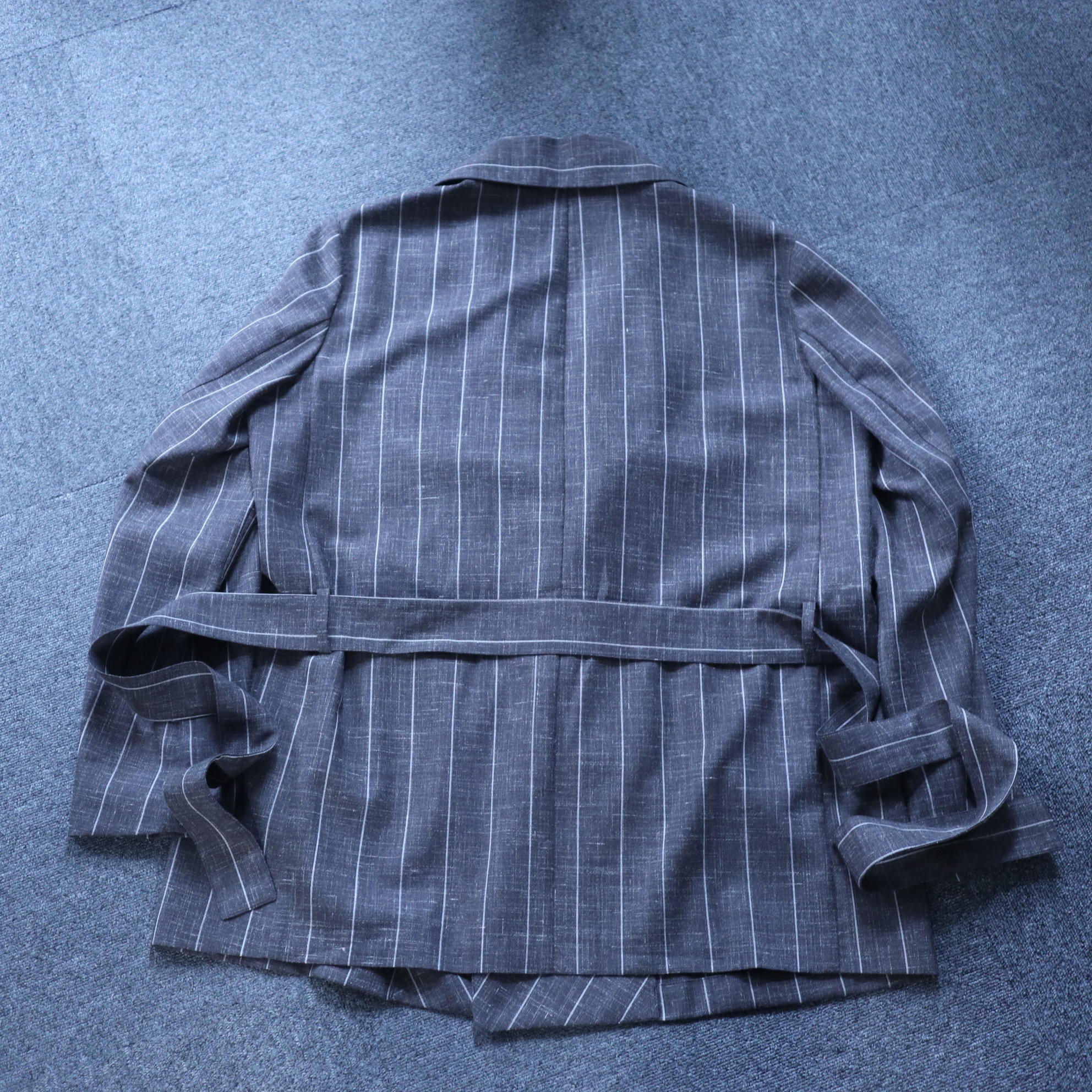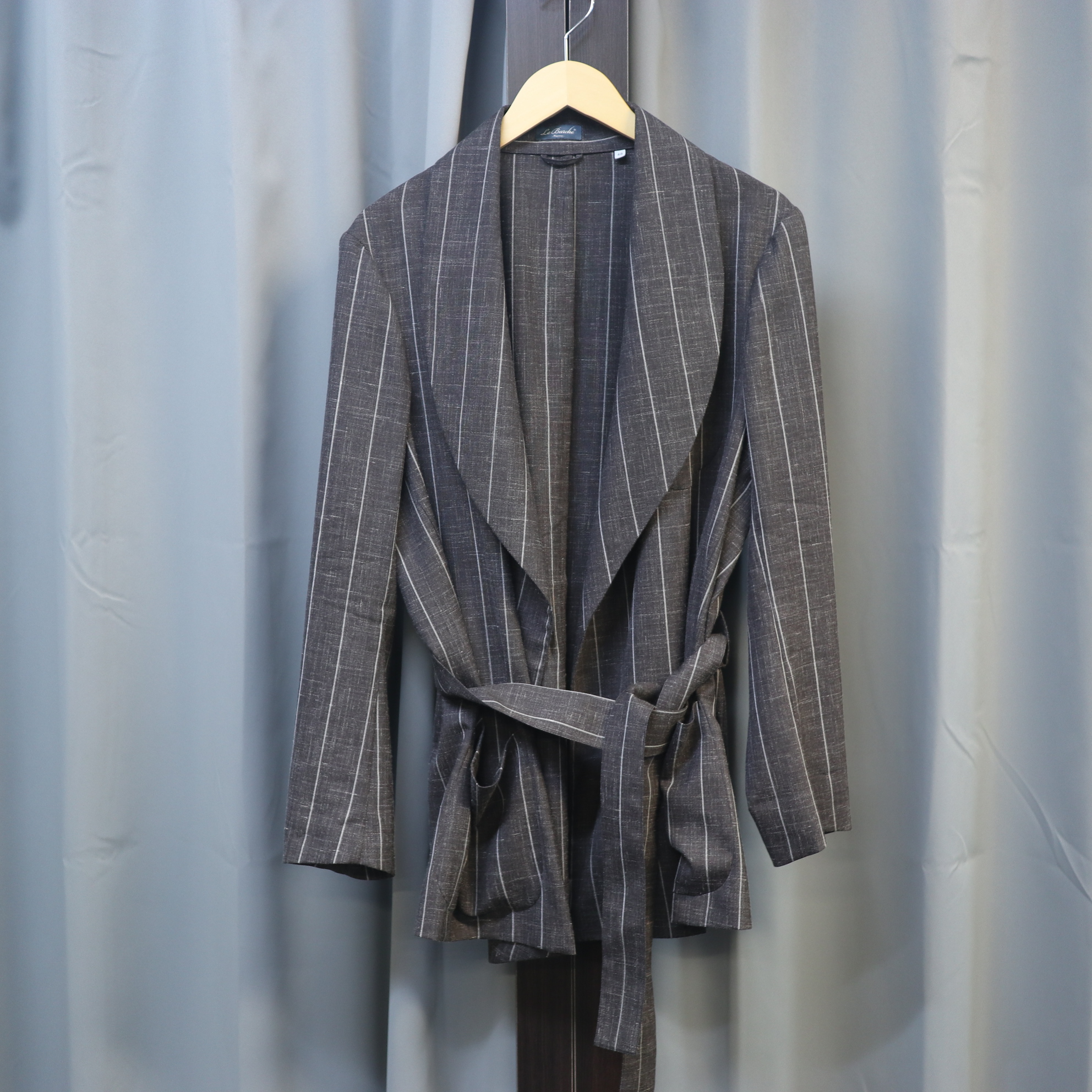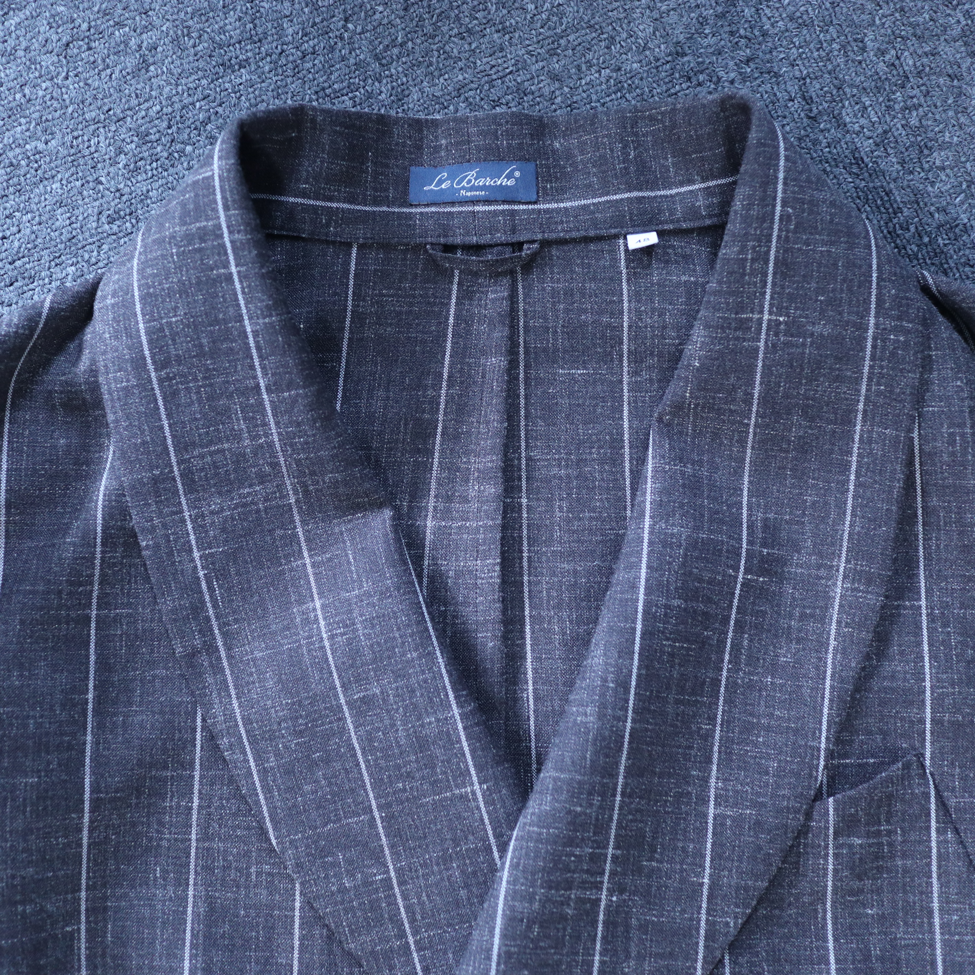 WOOL / LINEN STRIPE SHAWL COLLAR JACKET《48》