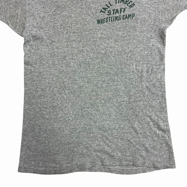 霜降りグレー×グリーン、染み込みプリント「TALL TIMBER STAFF WRESTLING CAMP」