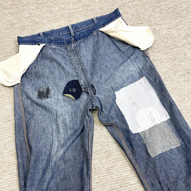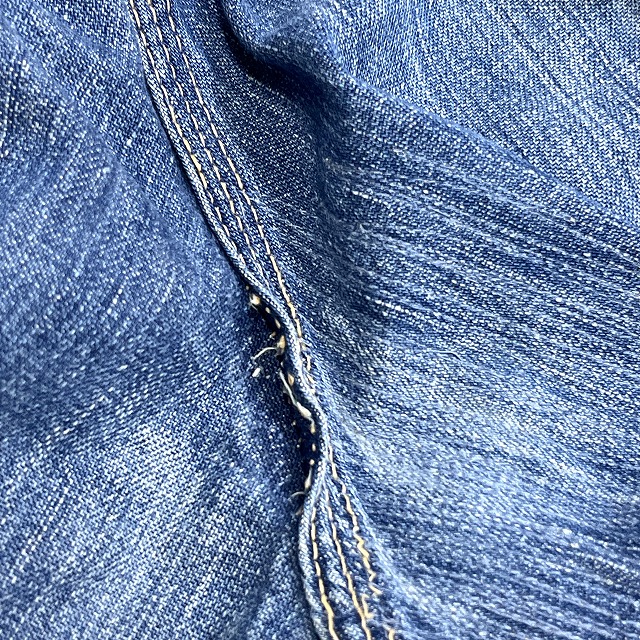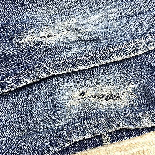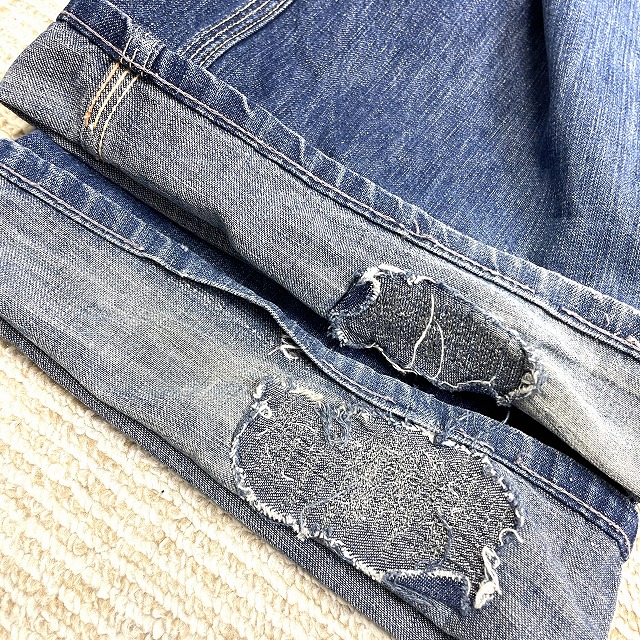 股、腿付近、右ヒップポケット、裾等にリペアがございます。