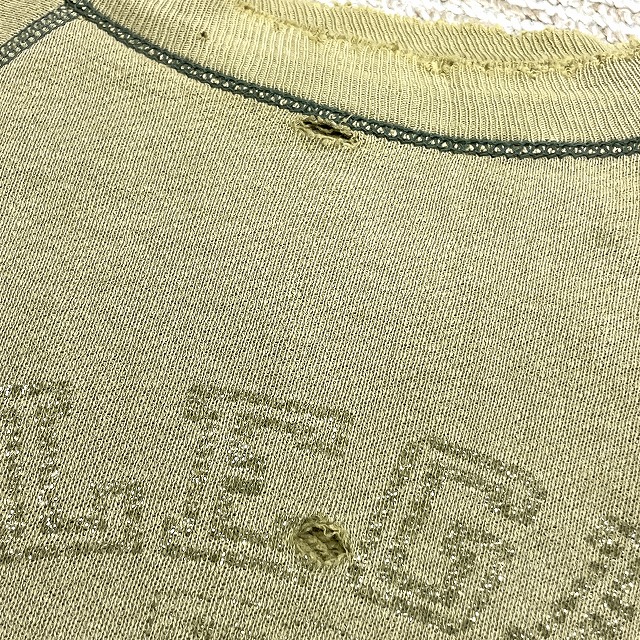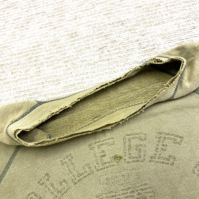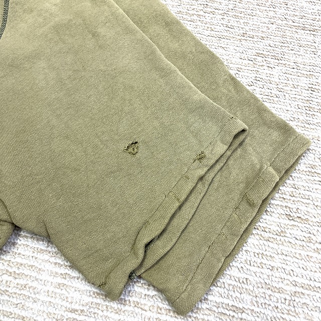 - 画像のように、色褪せ、破れ等のダメージ、汚れ、プリントに剥げ等着用感がございますが、古着慣れされた方でしたら問題なく着用可能な状態です。