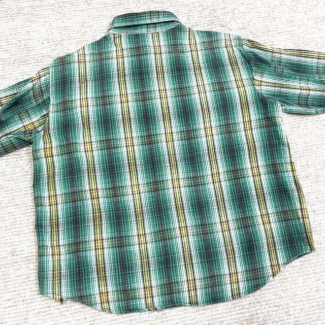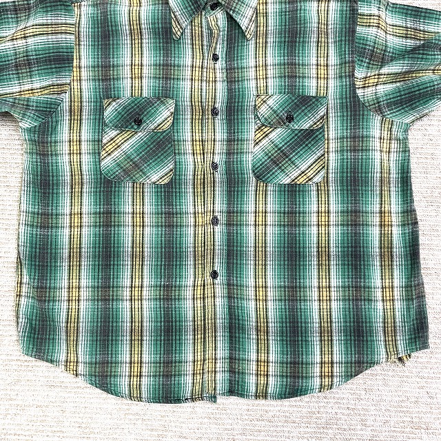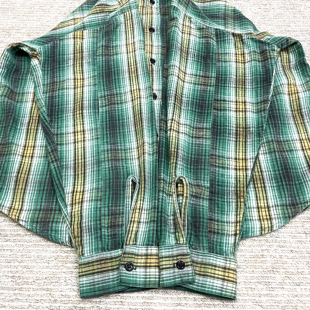 左胸ポケットの縫製にステッチ抜けがあり、後裾にホツレがございます。