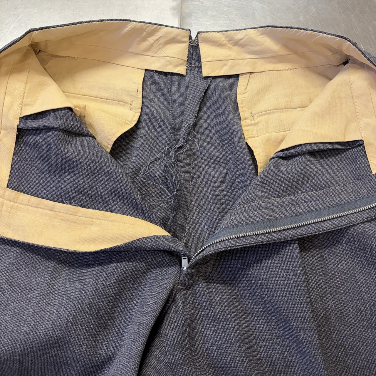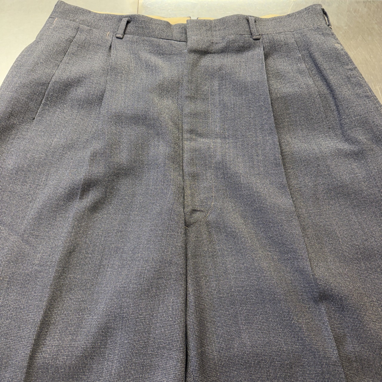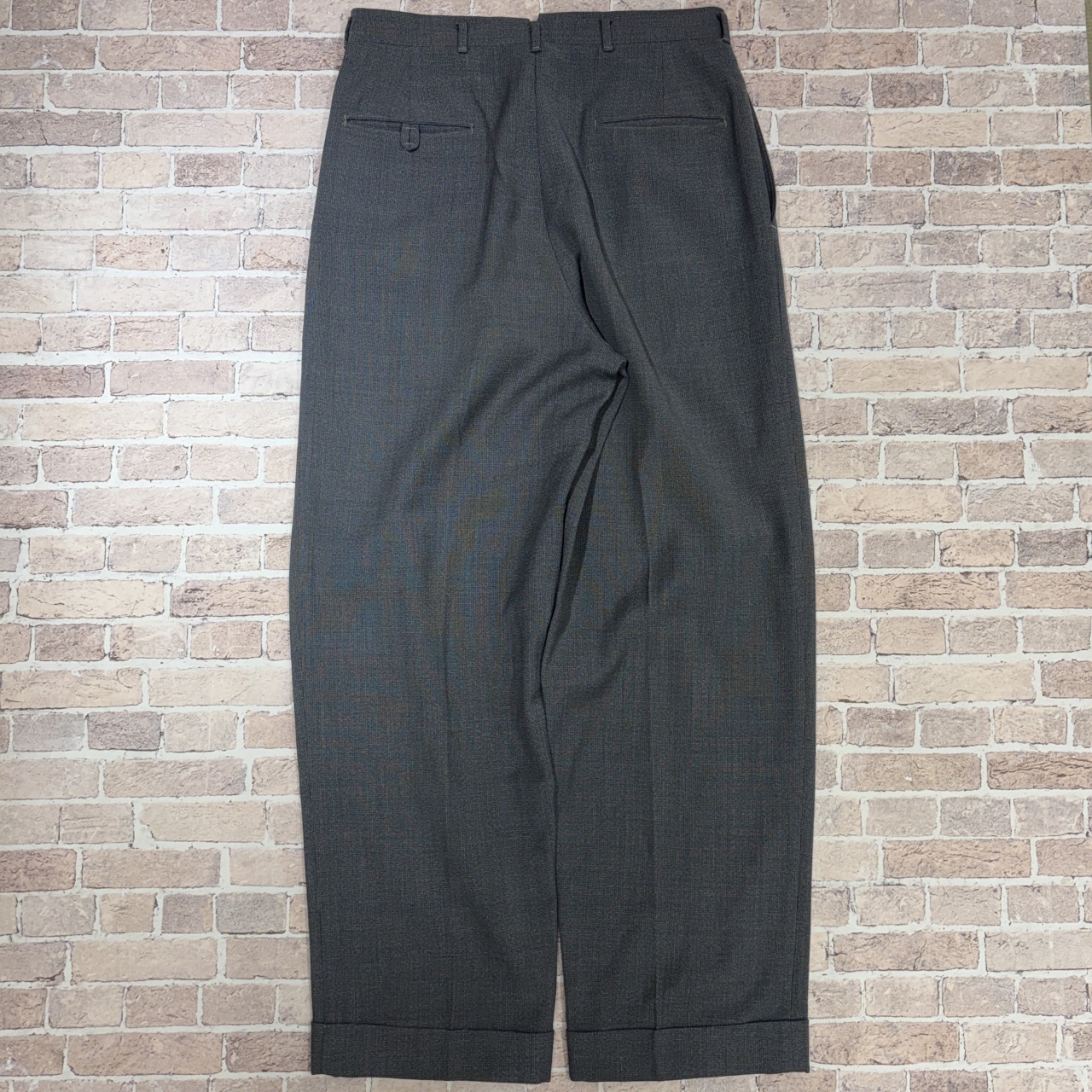 「2PLEATES、GRAY、実寸 W32 L30.5」