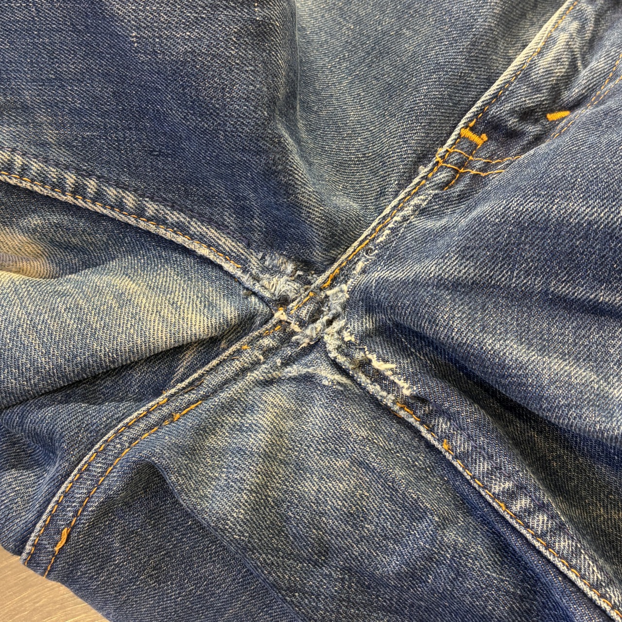 - 細かなダメージやスレ感、ブリーチ跡やアタリなどヴィンテージデニム特有の着用感が御座います。