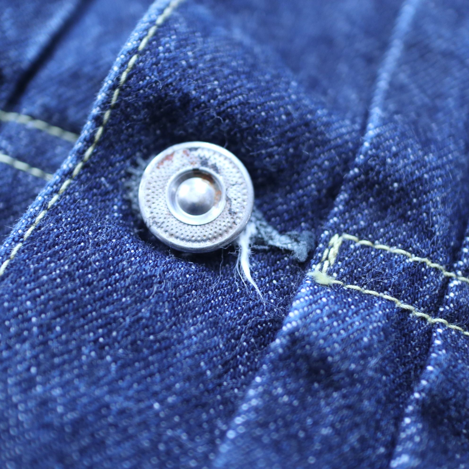 - 裏地にリベットの移染、ボタンホールにほつれがあります。