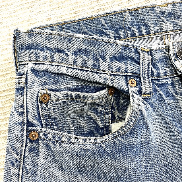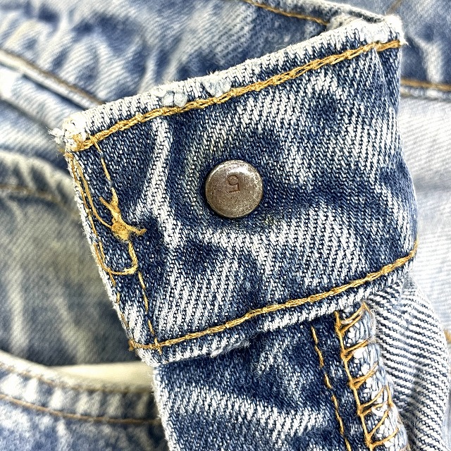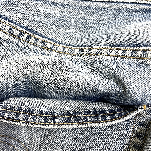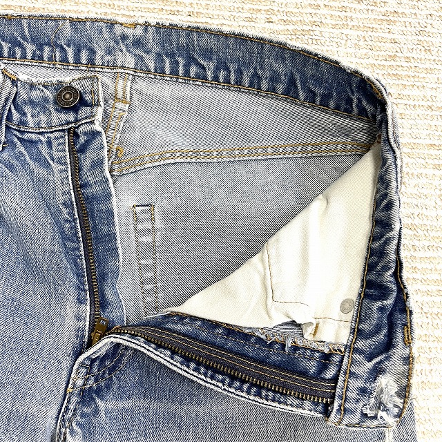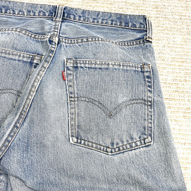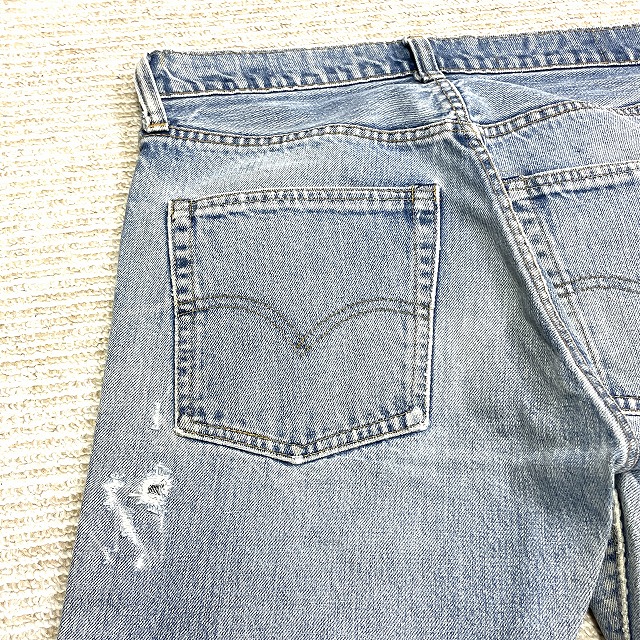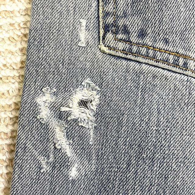 - 画像のように、汚れ、スレ、ホツレ、小傷があり、左ヒップポケット下に穴等のダメージがございます。