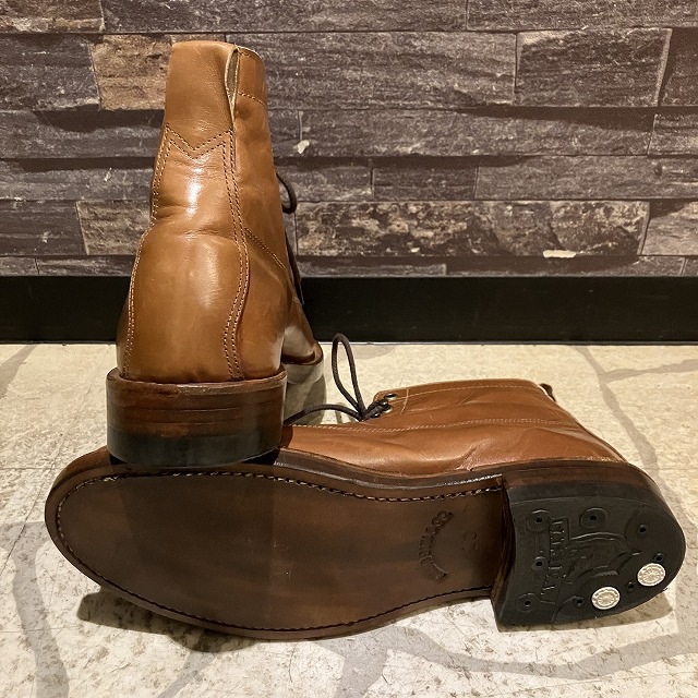 こちらのブーツはJULIAN BOOTSのジュリアン・イムリエ氏とコラボレーションしたブーツになります。ヴィンテージのモンキーブーツをもとに光沢感のある柔らかなレザーにキャッツポウヒールを使用したヴィンテージ感あふれる1足。
