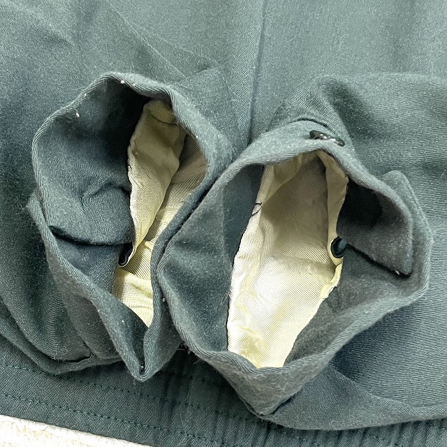 - 画像のように、スレ、薄汚れ、小傷、毛羽立ちがあり、裏地の右アームホールに手縫いで簡易的なリペアがございます。