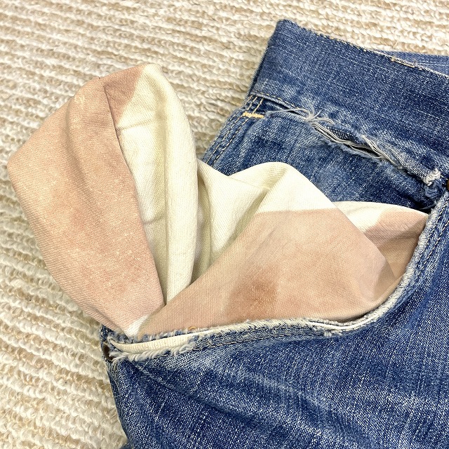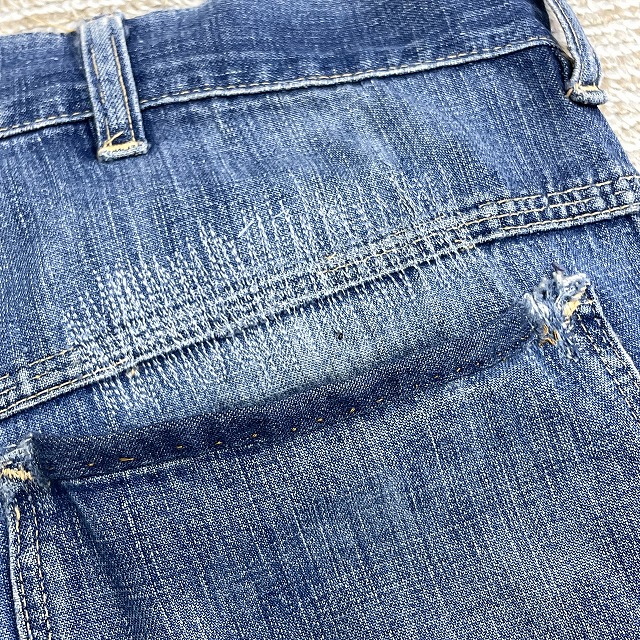 股、腿付近、右ヒップポケット、裾等にリペアがございます。