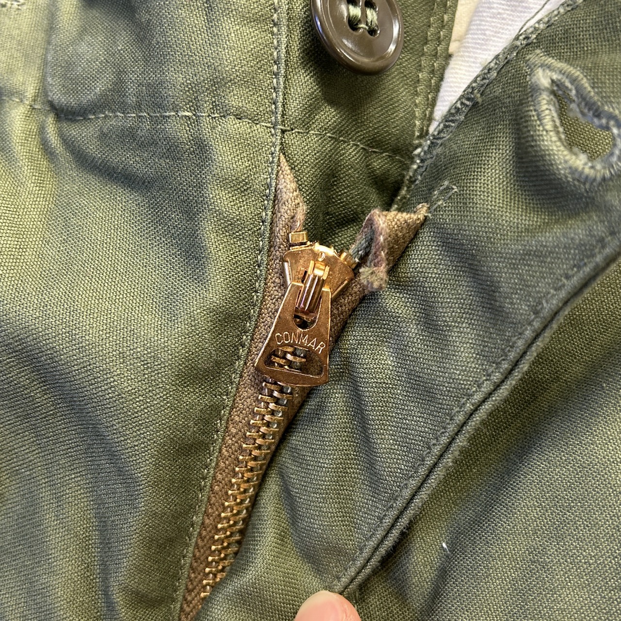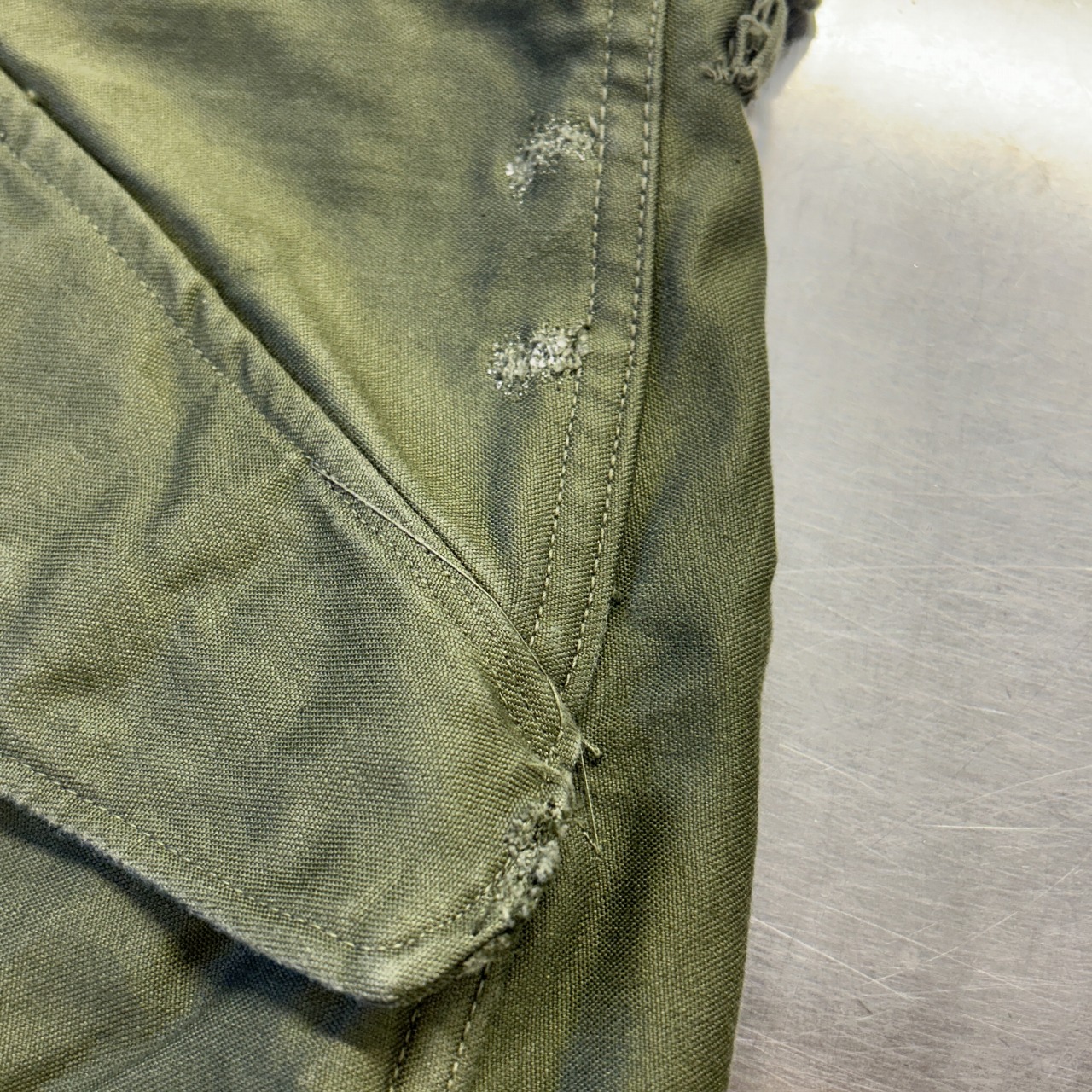 - 画像の様に腰付近に小さなリペア、裾にリペアやダメージや薄い汚れ、ドローコードにダメージ、使用感がございます。