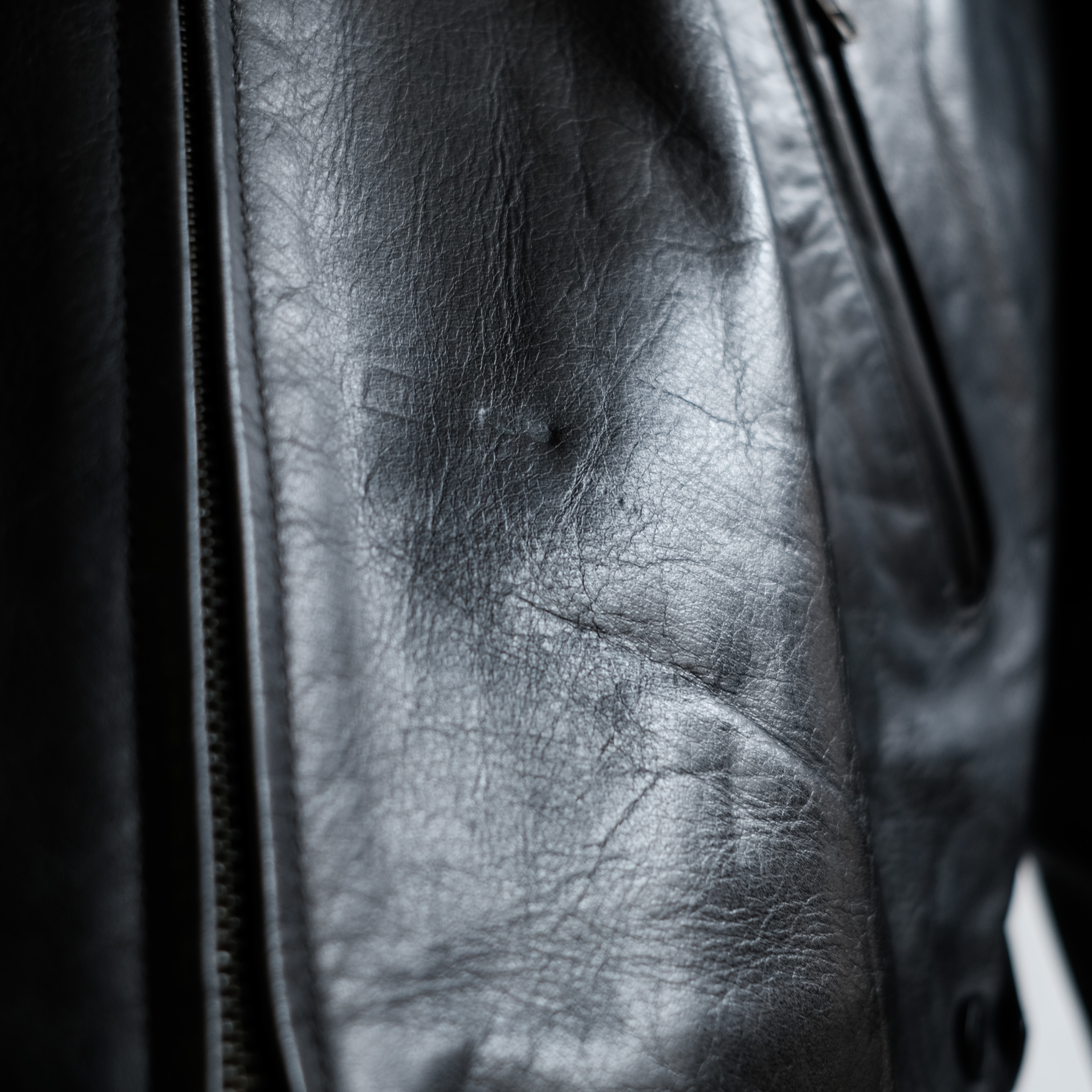 ゴチャゴチャしたデザインは排除された王道のシングルライダース。シルエットは男臭いカッコ良さがありながらも、野暮ったいものではなく非常に上品。
