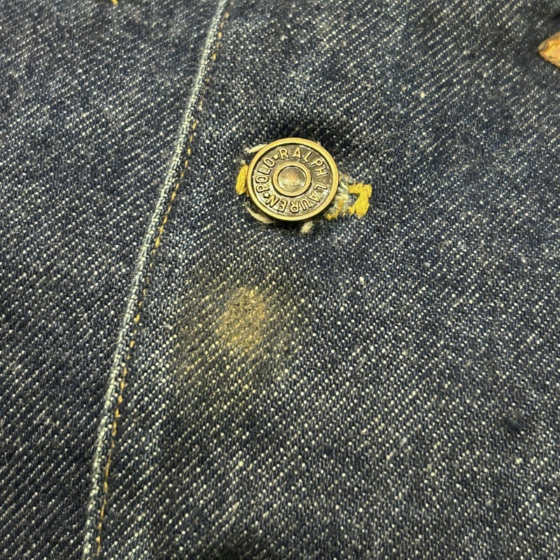 - 汚れが数か所、デニム特有の色落ちやアタリ等の着用感がございますが、その他に目立つ汚れやダメージ等は無く、古着慣れされた方でしたら問題無く着用していただける状態です。