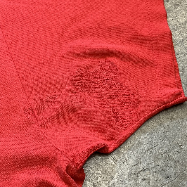- 左袖にリペア、所々に小穴がみられます。その他、薄汚れ等の年代相応の着用感がみられ、ユーズド慣れされた方におすすめの商品です。