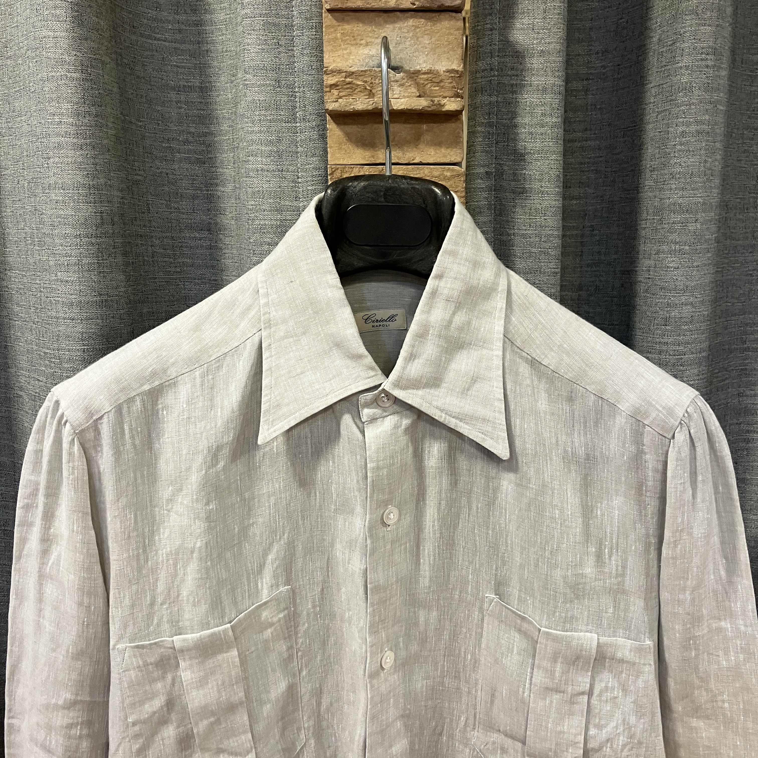LINEN SAFARI SHIRT LIGHT GREY《S》