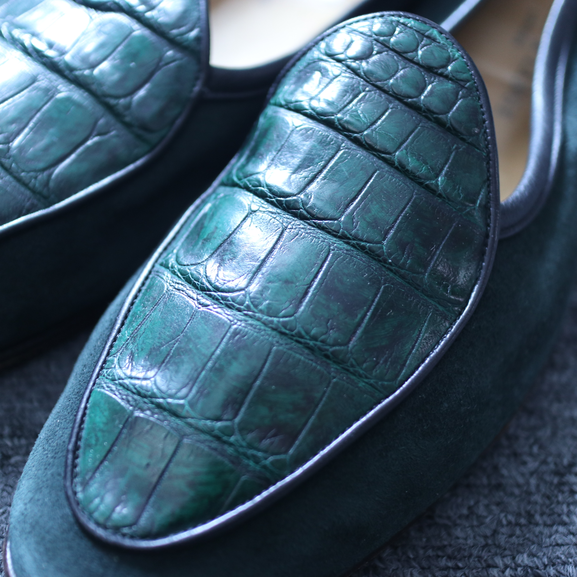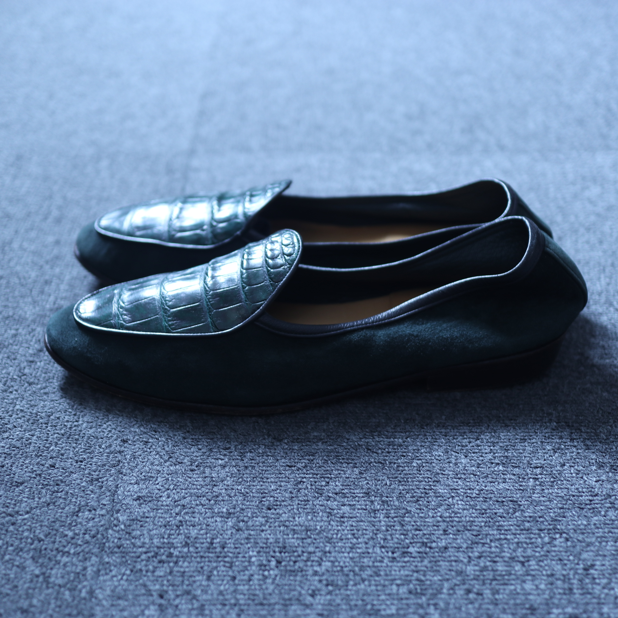 ”SAGAN” SUEDE / CROCODILE COMBINATION LOAFERS《41》