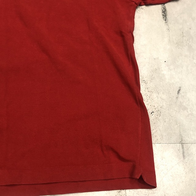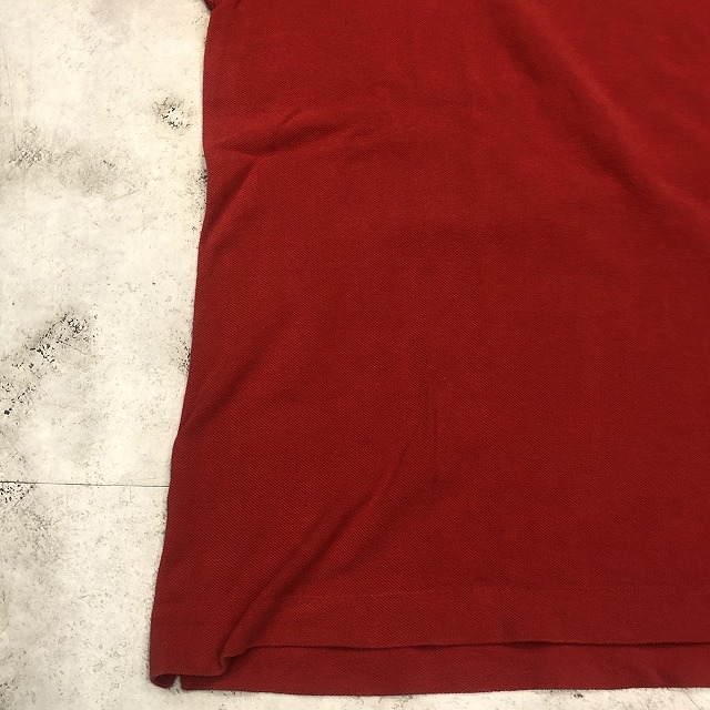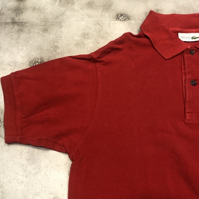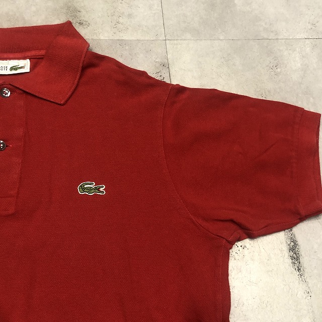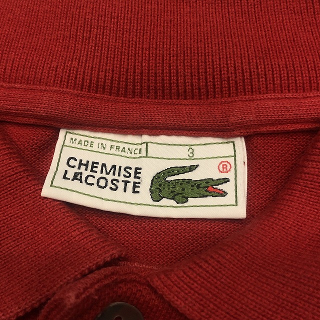 こちらは鮮やかなレッドカラー、タグ表記“3”サイズの一着。ブランドのアイコンとも言えるワニのワッペンが胸元にしっかりと鎮座し、さりげなく存在感を放っています。