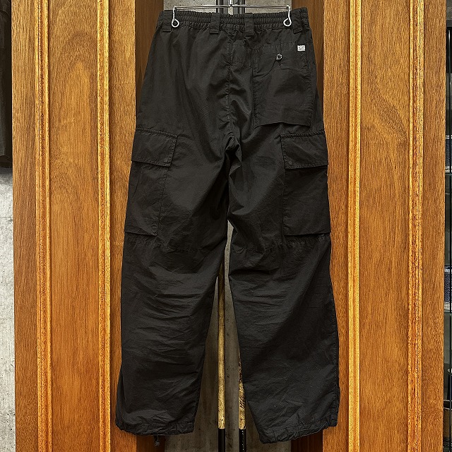 ワタリの前後から後ろ側まで大胆に取った機能的なカーゴポケットがミニマルデザインに良いアクセントです。