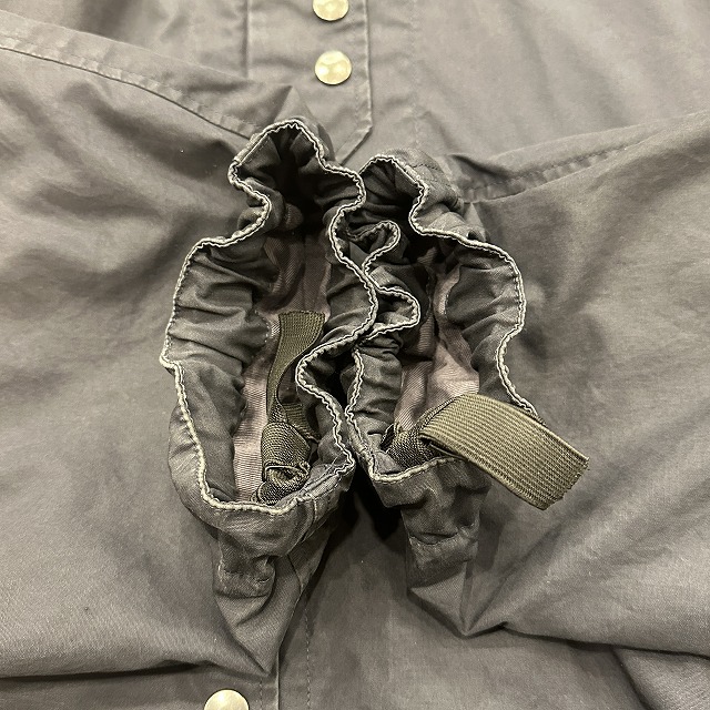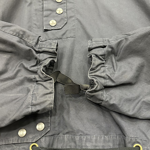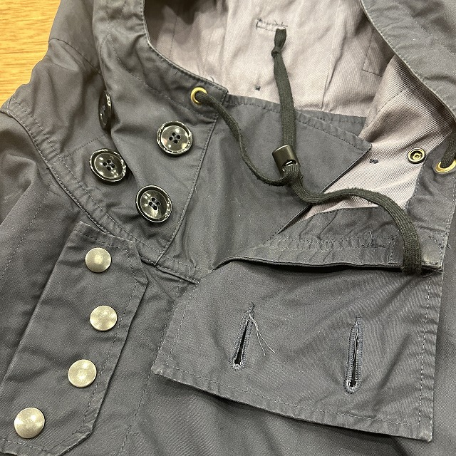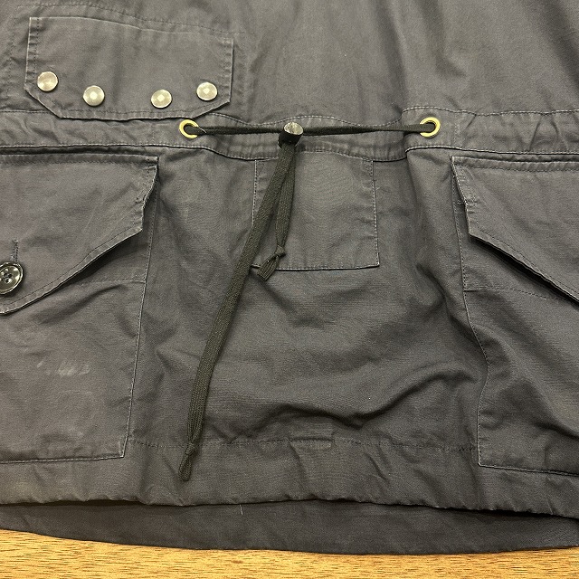海軍が甲板作業時に着るように設計されていることから、頭をスッポリ覆える程大きく、日差し避けの付いたフードや、作業時のヘッドギアのコードを通すスナップギミック、雨天時にも雨風を通さない程の高密度コットンで知られるベンタイルを使用した機能性の高い一着。