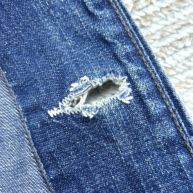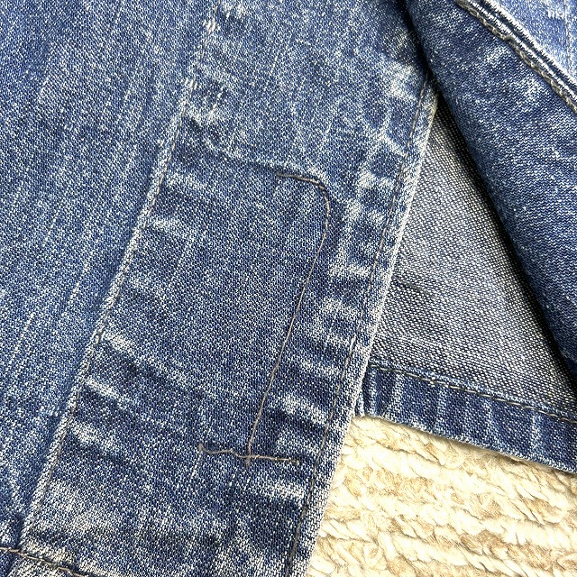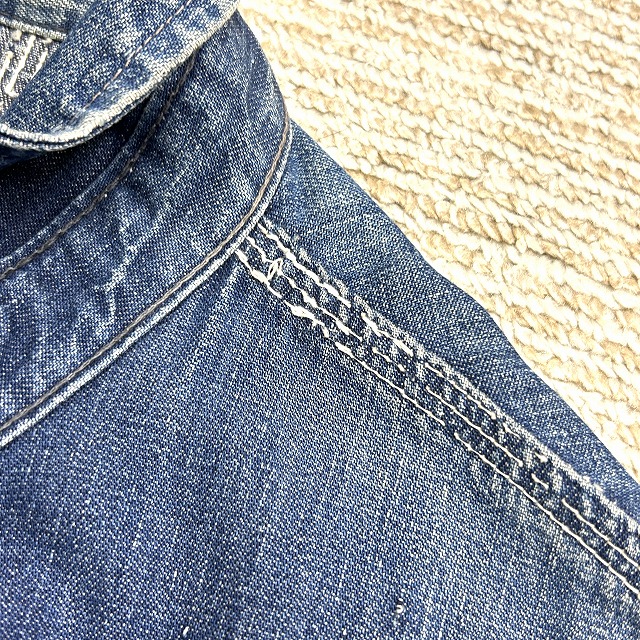 - 画像のように、汚れ、キズ、アタリ、ステッチ抜けがあり、肩等に手縫いで簡易的なリステッチがございます。