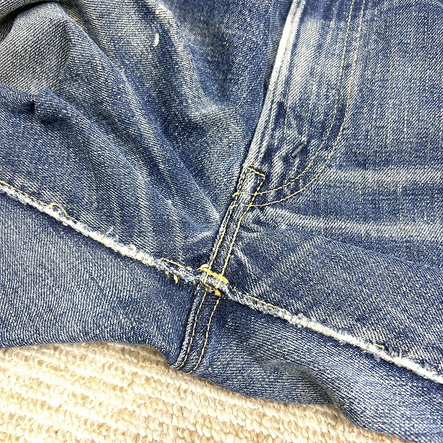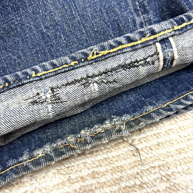 - 画像のように、汚れ、キズ、ステッチ抜け、アタリがあり、裾にリペアがございます。