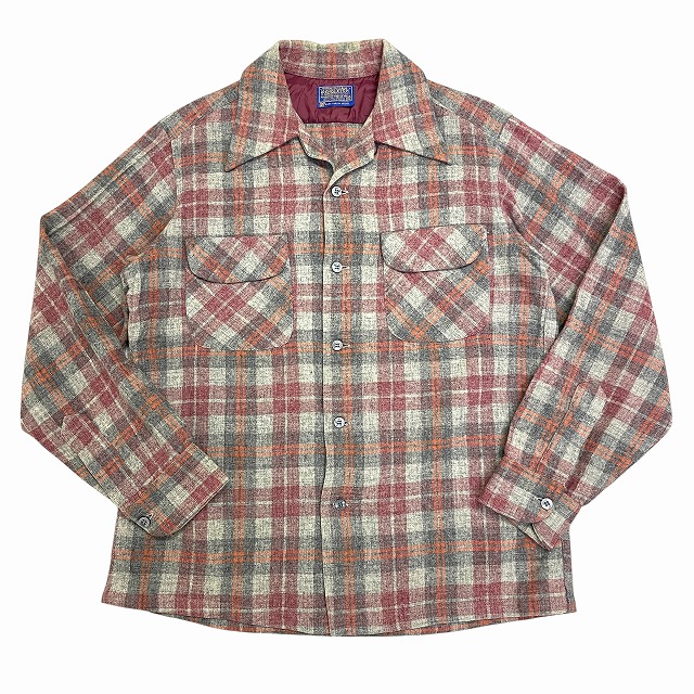 PENDLETON OPEN COLLAR WOOL SHIRT 60S 「バーガンディ×グレー、サイズM」