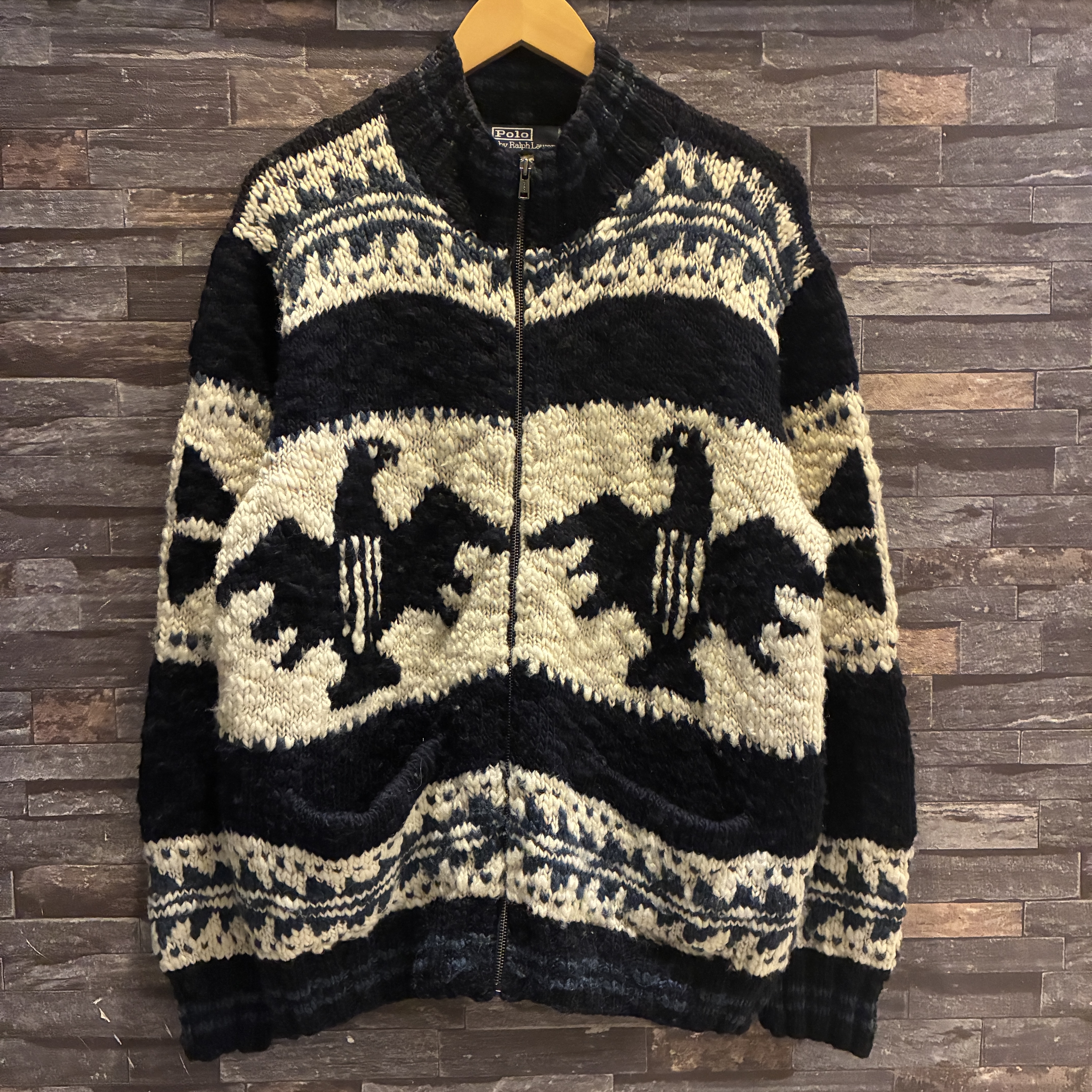 RALPH LAUREN F/Z COWICHAN CARDIGAN THUNDERBIRD 1990'S OLD