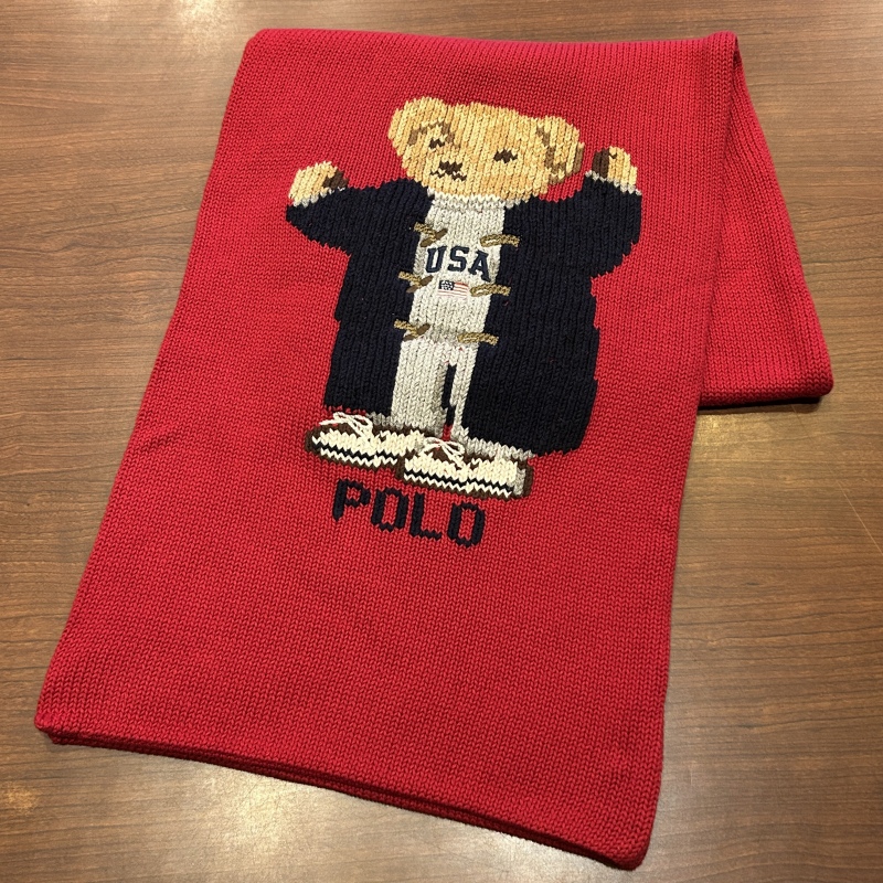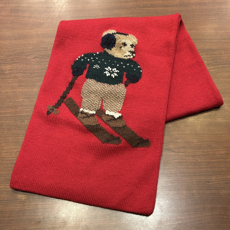RALPH LAUREN POLO BEAR MUFFLER RED 1990'S OLD